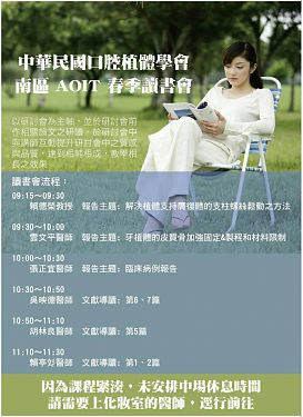 昱擎科技股份有限公司雲文平執行長應邀至中華民國口腔植體學會南區AOIT春季讀書會演講  ,主講"牙植體的皮質骨加強固定&製程和材料限制。